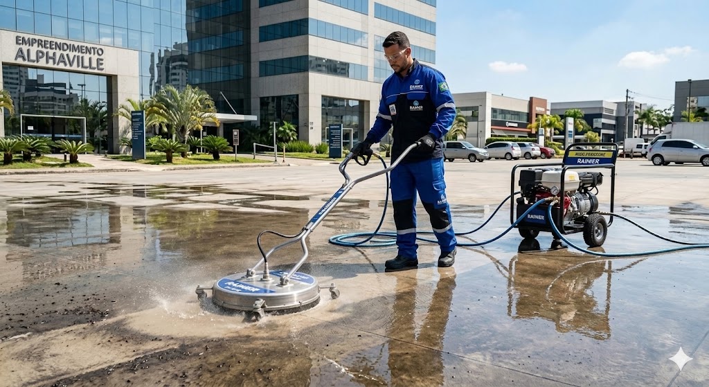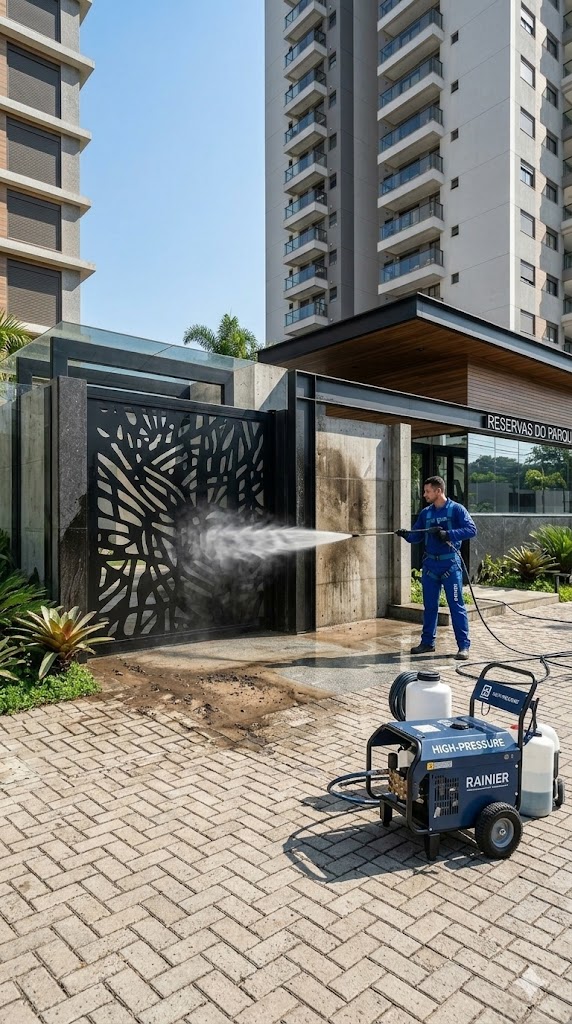 Serviço especializado de limpeza profunda realizado com equipamentos profissionais de alta pressão, ideal para remover sujeiras incrustadas, manchas, limo e resíduos em superfícies externas. A técnica é indicada para pisos de concreto, fachadas, muros, estacionamentos e áreas industriais, restaurando a aparência original das superfícies e contribuindo para a conservação e valorização do patrimônio.